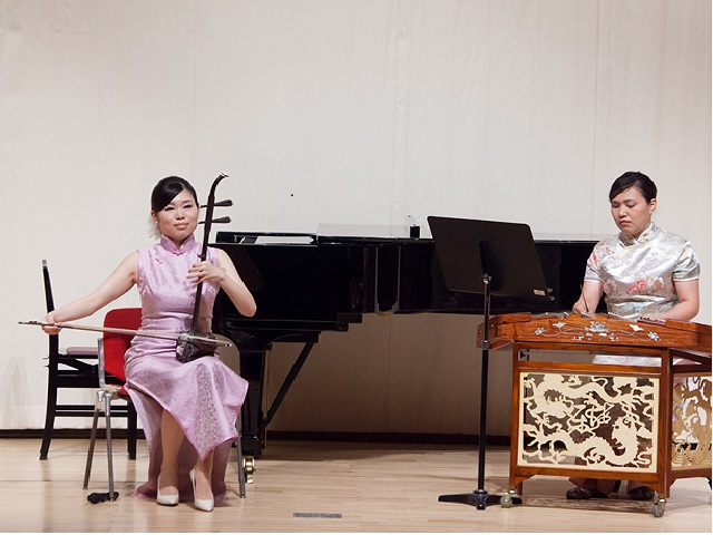 講師演奏では、普段聴く機会の少ない中国楽器、二胡と楊琴のアンサンブルをお届けしました。